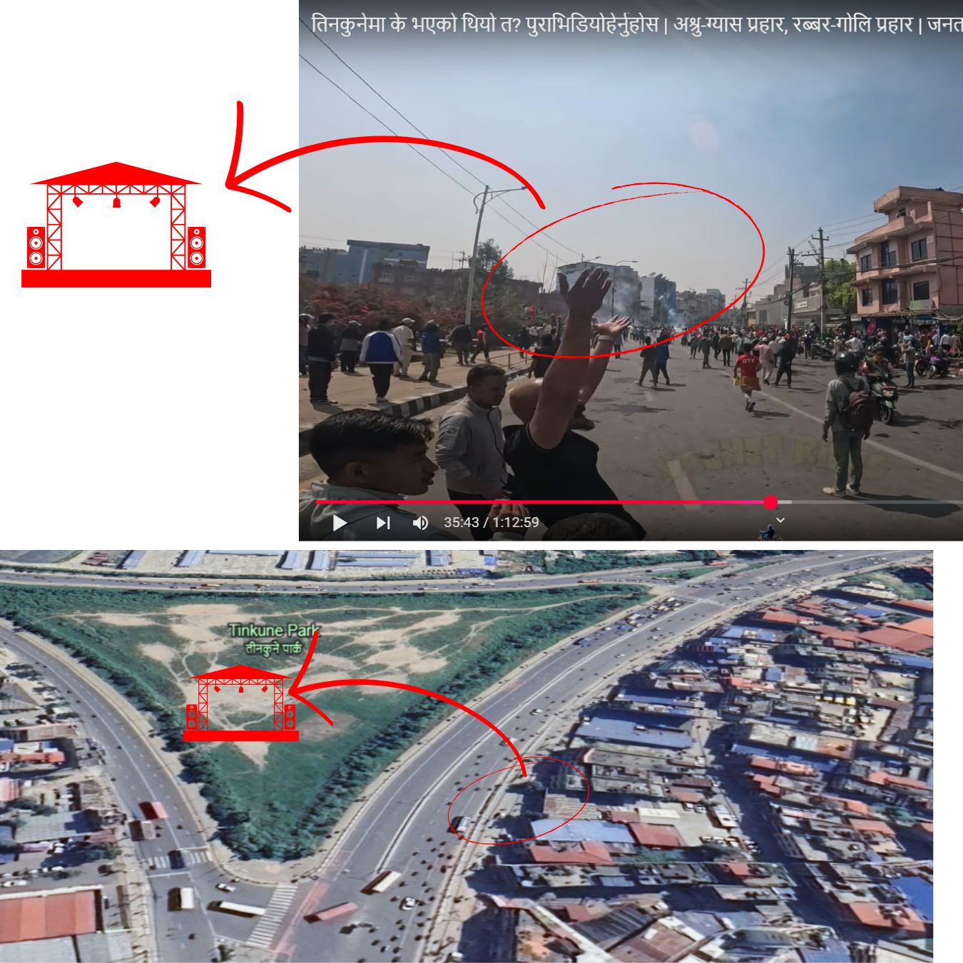 “डेफ्नेट्ली यतातिर झडप हुने बेलामा टियरग्यास हान्ने क्रममा त्यो टियरग्यास त्यहाँ पनि पुगेको हो । किनभने त्यो त सबै अहिले जुन-जुन ठाउँमा घटनाहरू भइरहेको छ, त्यो घटना भएको एरिया त्यही हो । त्यस कारण एउटा टियरग्यास एक ठाउँबाट कहिलेकाहीँ अर्को ठाउँमा पुग्छ । त्यो हान्ने बेलामा कहिले एङ्गल मिल्दैन, केही चिज होला…”
